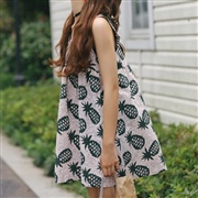 鳳梨印花鳳梨少背帶裙連身裙 [連身裙] #1-淺灰...