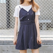 顯瘦收腰露背吊帶背心條紋連身裙 [連身裙]