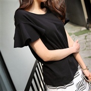 荷葉邊飛飛袖開叉顯瘦上衣衫 [上衣] #1-白色 ...
