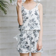 花朵吊帶背心高腰雪紡連體短褲連衣褲 [連身褲]