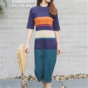 拼色條紋撞色冰絲爽針織連身裙 [連身裙]