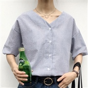 條紋洗水短袖襯衫 [上衣] [襯衫]