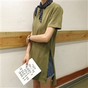 圓領前短後長 中長款短袖上衣 [上衣] [TEE]...