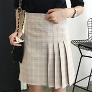 格子側邊壓褶半百褶裙字裙高腰短裙 [半身裙] #1...