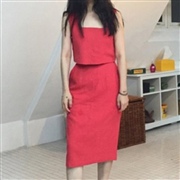 亞麻背心半身裙兩件套 [套裝] #1-白色 #2-...