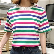 彩虹條紋拼色美膩寬鬆短袖上衣 [上衣] [TEE]...