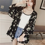 荷葉邊花朵印花外套 [外套] #1-白色 #2-黑...
