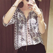 獨特花色印花袖子收口民族娃娃衫 [上衣] #1-深...