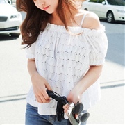 鏤空繡花漏肩吊帶背心襯衫 [上衣]