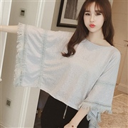 蝙蝠袖鏤空流蘇雪紡衫上衣 [上衣] #1-灰藍色 ...