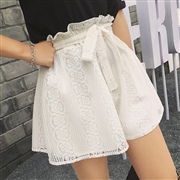 鬆緊綁帶收腰蕾絲鏤空純色短褲 [裙褲] #1-白色...