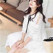 七分袖蕾絲小露肩連身裙 [連身裙]