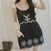 修身高腰短褲氣質繡花吊帶背心連身裙 [連身裙]