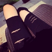 繡花破洞毛邊九分顯瘦鉛筆褲 [Leggings] ...