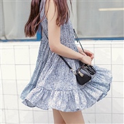 寬鬆田園百搭蓬蓬雪紡無袖連身裙 [連身裙]