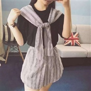 交叉襯衫袖披肩假兩件上衣上衣+條紋短褲裙 [套裝]...
