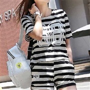 條紋休閒跑步兩件套 [套裝] #1-黑色 #2-粉...