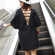 後背鏤空心機連身裙 [連身裙] #1-黑色 #2-...
