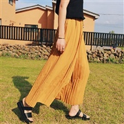 百褶雪紡高腰顯瘦褲裙闊腿褲九分褲 [褲子] #1-...