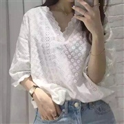 鏤空蕾絲上衣 [上衣] #1-白色 #2-深灰色 ...