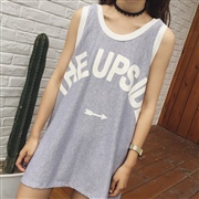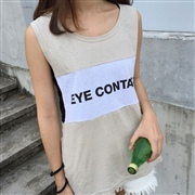 無袖字母印花圓領上衣 [背心.馬甲] #1-黑色 ...