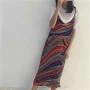 民族開叉吊帶背心雪紡連身裙 [連身裙] #1-紅色...