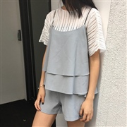荷葉擺雪紡吊帶背心上衣+休閒短褲兩件套裝 [套裝]...