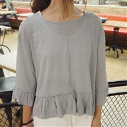 一字露肩顯瘦短袖上衣 [上衣] #1-淺灰色 #2...