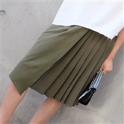 壓褶軍綠色拼接百褶裙 [半身裙]