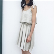 流蘇邊蝴蝶結吊帶背心連身裙 [連身裙] #1-豆綠...