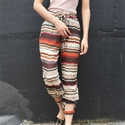 復古民族綁帶雪紡九分褲 [褲子] #1-紅色系 #...