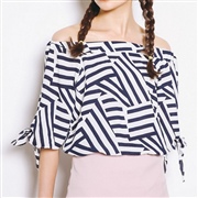 一字肩蝴蝶結綁帶襯衫 [上衣]
