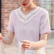 鏤空短袖 [上衣] #1-白色 #2-粉紅色