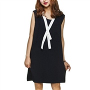 蝴蝶結氣質無袖雪紡連身裙 [上衣] #1-白色 #...