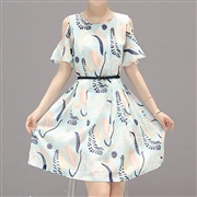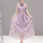 娃娃領無袖收腰雪紡印花連身裙 [連身裙]