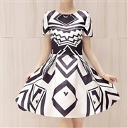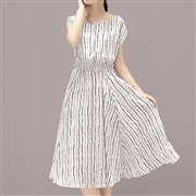 黑白條紋中長裙收腰印花連身裙 [連身裙]