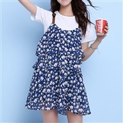 簡約白上衣+小碎花背帶連身裙兩件套 [套裝]