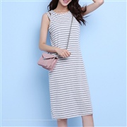 短袖針織條紋度假海邊長裙 [連身裙] #1-灰色 ...