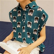 雪紡麻翻領襯衫無袖襯衫背心 [上衣] [襯衫]