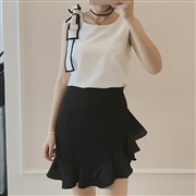 蝴蝶結雪紡背心+不規則高腰荷葉邊半身裙 [套裝]