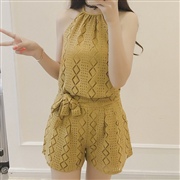 蕾絲露背掛脖背心+高腰闊腿短褲套裝 [套裝] #1...