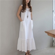 純色寬鬆顯瘦中長連身裙 [連身裙] #1-白色 #...