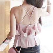 掛脖式花瓣收腰吊帶背心襯衫 [背心.馬甲] #1-...