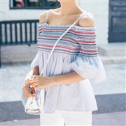 條紋鑲鑽星星圖案荷葉袖襯衫 [上衣]