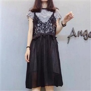 條紋綁帶兩穿襯衫連身裙 [連身裙]