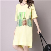 中長款印花連身裙 [連身裙] #1-白色 #2-粉...