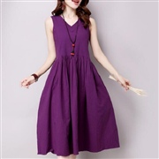 寬鬆亞麻無袖背心 [連身裙] #1-白色 #2-杏...
