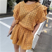高腰闊腿褲套裝短褲 [套裝] #1-白色 #2-薑...
