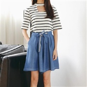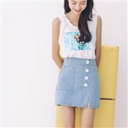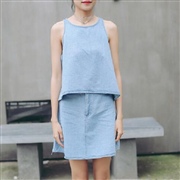 牛仔背心+牛仔半身裙 [套裝] #1-淺牛仔藍 #...
