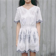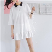 寬鬆裙擺領中袖 [連身裙] #1-白色 #2-粉紅...